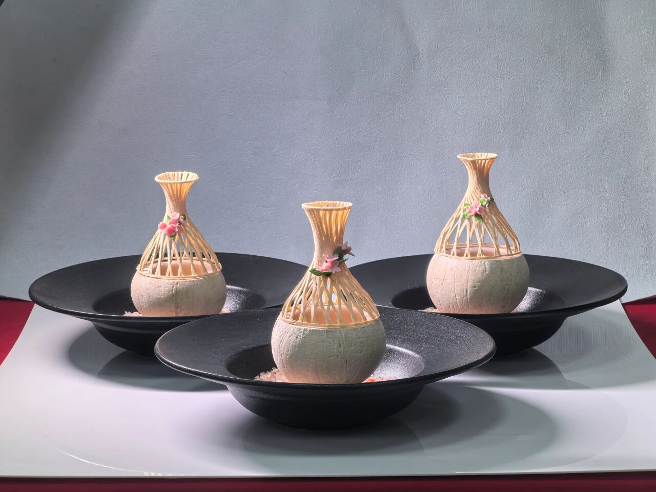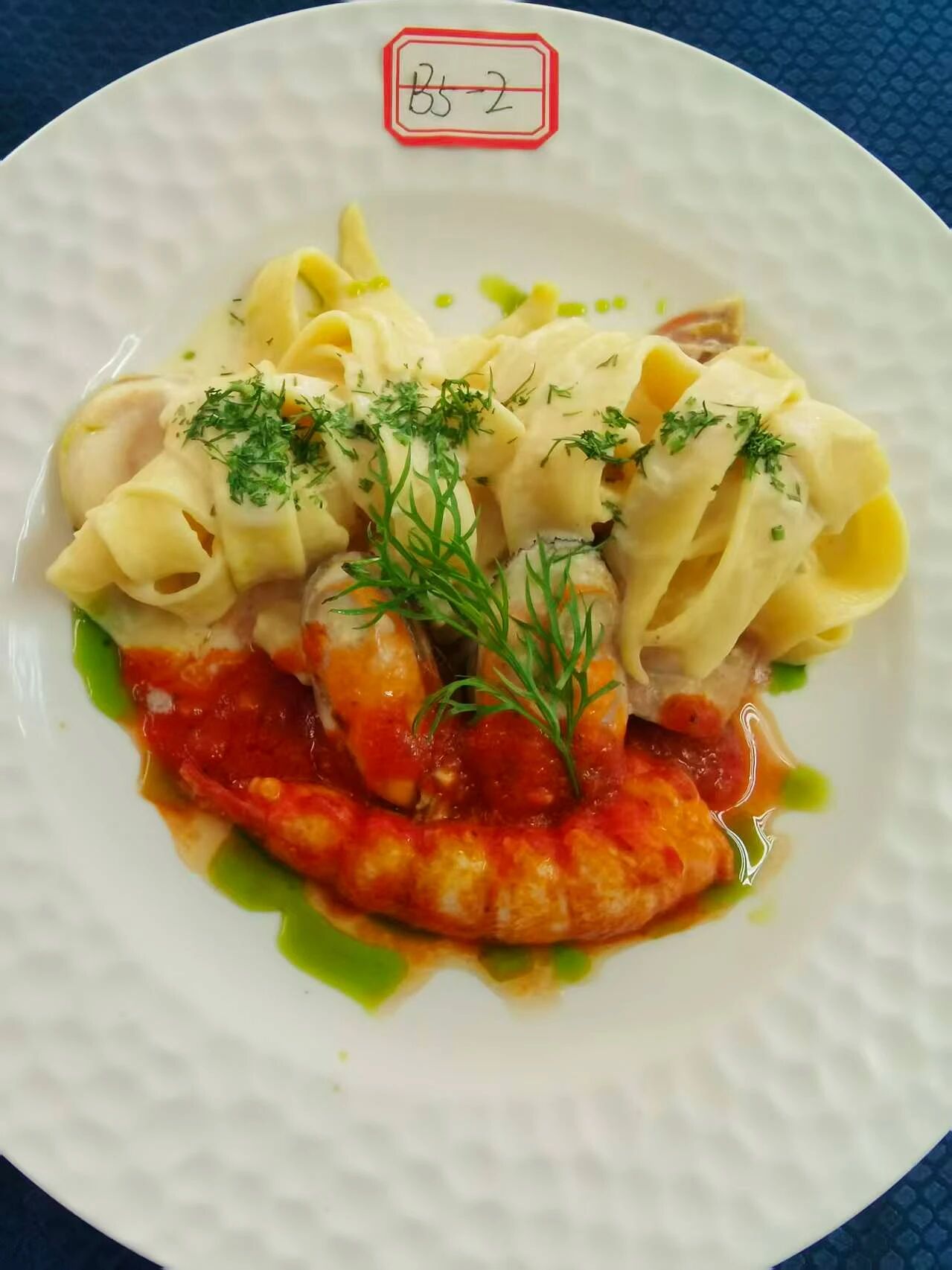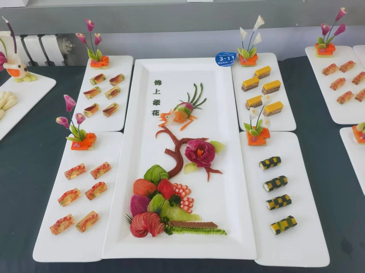 在11月21日至24日的烹饪技能竞赛中,南郊集团共派出5名参赛选手。比赛现场,参赛选手各展技艺、尽显身手,参赛作品亮点频出、精彩纷呈。在中式烹饪竞赛环节,尹少督作品《虫草椰香花胶盅》《冷拼明湖韵》荣获中式烹饪一等奖,王允垒作品《荷塘虾趣》荣获中式面点一等奖,孙宏达作品《锦上添花》《一品赛鲍鱼》荣获中式烹饪二等奖。一道道作品,刀工精湛、设计新颖,大胆地将现代营养学、美学与鲁菜精髓完美融合,既展现了扎实的职业素养,又体现了追求卓越的工匠精神。西餐烹饪环节,肖明明制作的《奶油海鲜意面》《烤雪花西冷配红酒汁》荣获一等奖,徐允刚制作的《烤安格斯牛柳配红酒汁》《烤甜椒意面藏红花澳带》荣获三等奖。选手们用娴熟的技法、规范的流程,精心制作西式餐品,并搭配设计精美的作品说明书,展现出了高超的专业水准和良好的职业风貌。