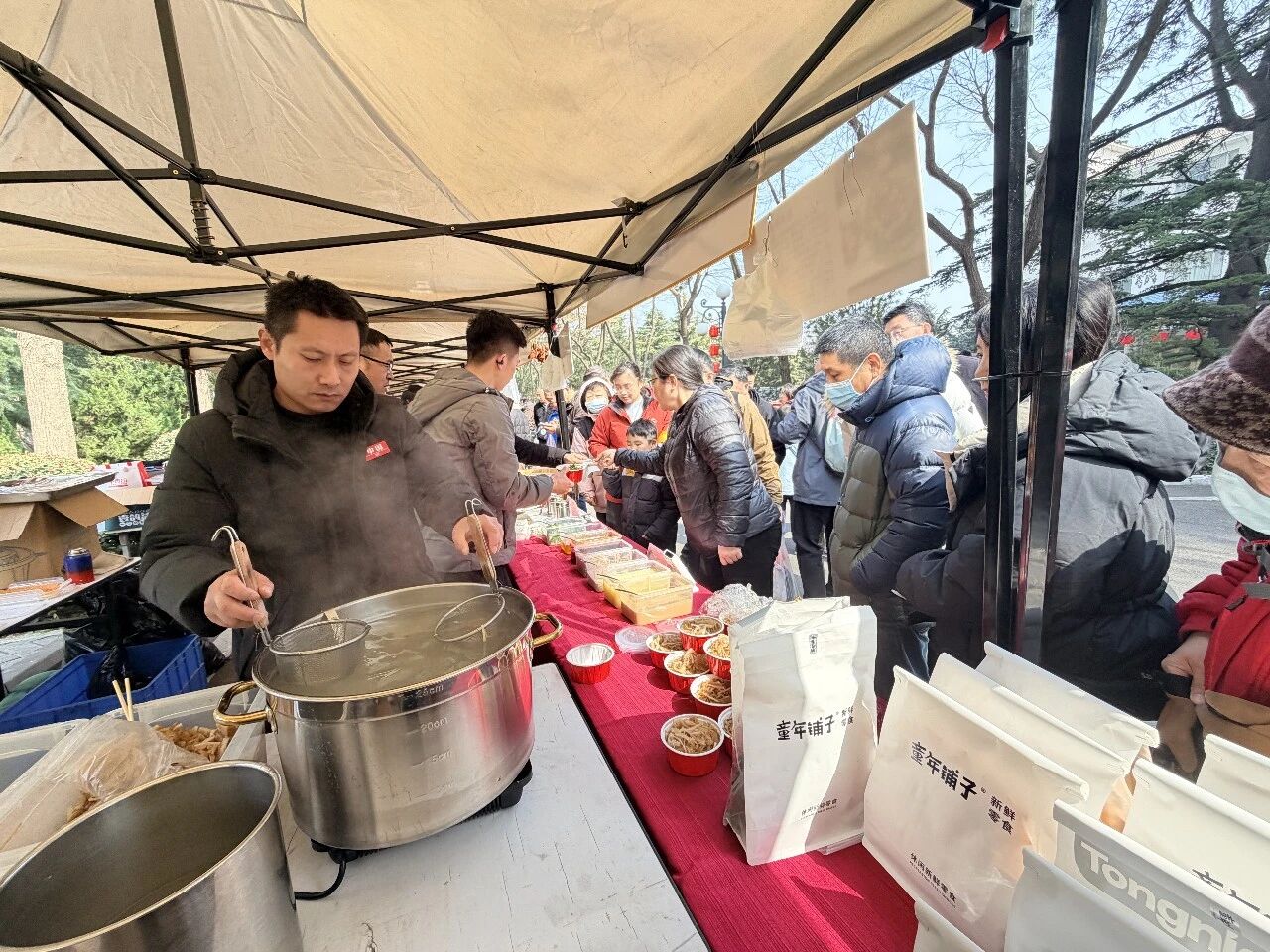 “权属单位爆品美食区”升腾着诱人的香气,南郊宾馆、山东大厦、颐正大厦等集团权属酒店的爆款产品受到市民热捧。南郊宾馆爆款酱肘子开集不多时便提前售罄,不用嚼的四喜丸子老少皆宜,美女顾客在品尝了酥皮儿肉火烧之后自愿当起了宣传员,大厨自制的杂粮养生窝头、鳞片儿五香酥肉让人一尝便忘不了。山东大厦潍县肉火烧、千层榴莲酥、玫瑰鲜花饼、自制酸奶等凭借独特的口味脱颖而出,深受市民喜爱。颐正大厦摊前食客不断,知名主持人小啰啰在品尝了“泉水爆肚”后,给出了“比很多网红店的好吃,星级酒店品质有保证,制作工艺我服气”的称赞。