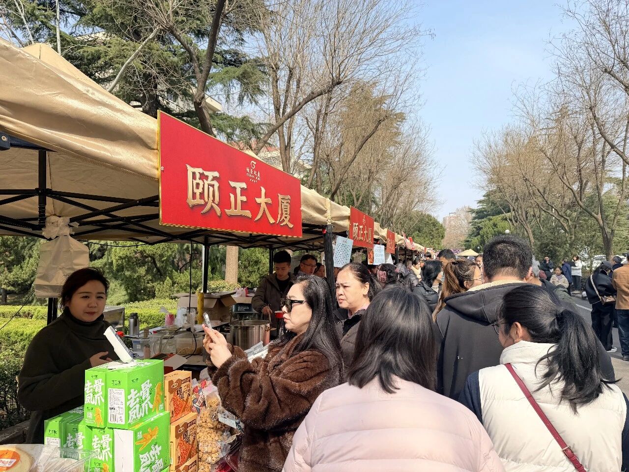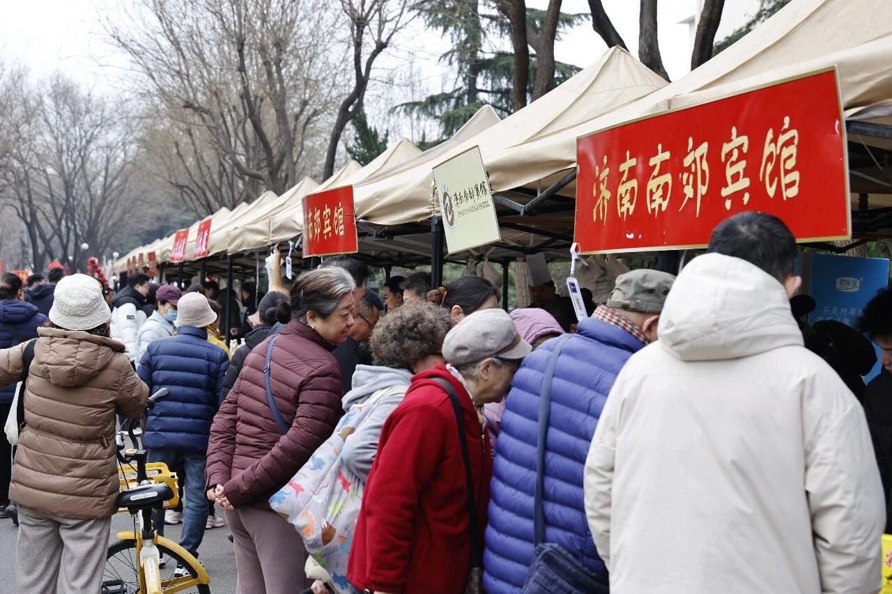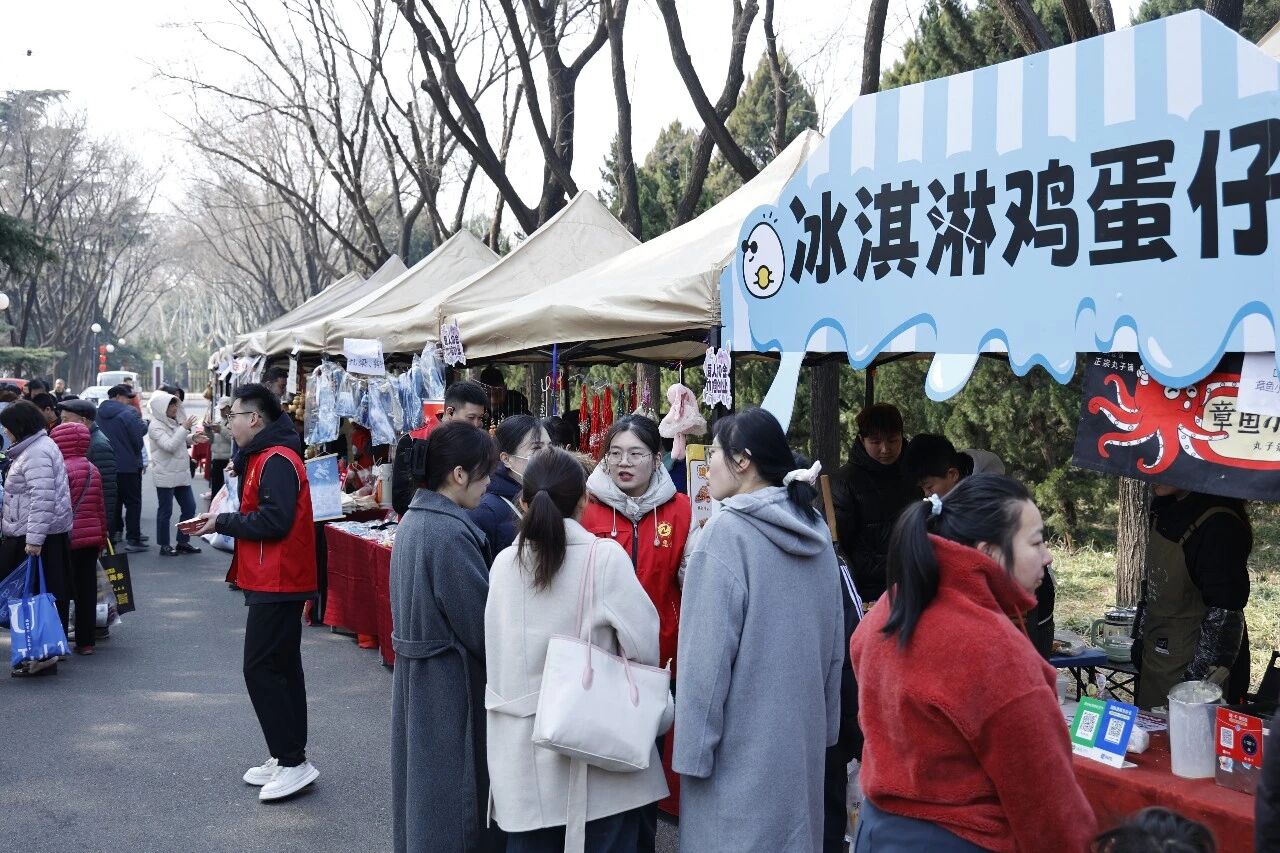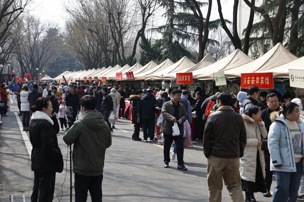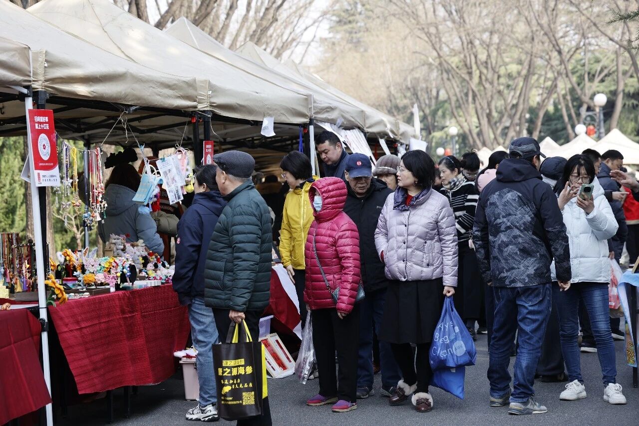 在南郊宾馆景色秀丽的千亩园林内,春风拂面,阳光和煦,竞相开放的玉兰、连翘、迎春花的芬芳与各类美食的诱人香气,此起彼伏的欢声笑语、悠扬的声乐演奏,孩子们嬉闹的声音相映成趣。市集现场,百余个精品摊位鳞次栉比,通过多元主题分区,打造出沉浸式体验场景,彰显了文旅融合的新意。