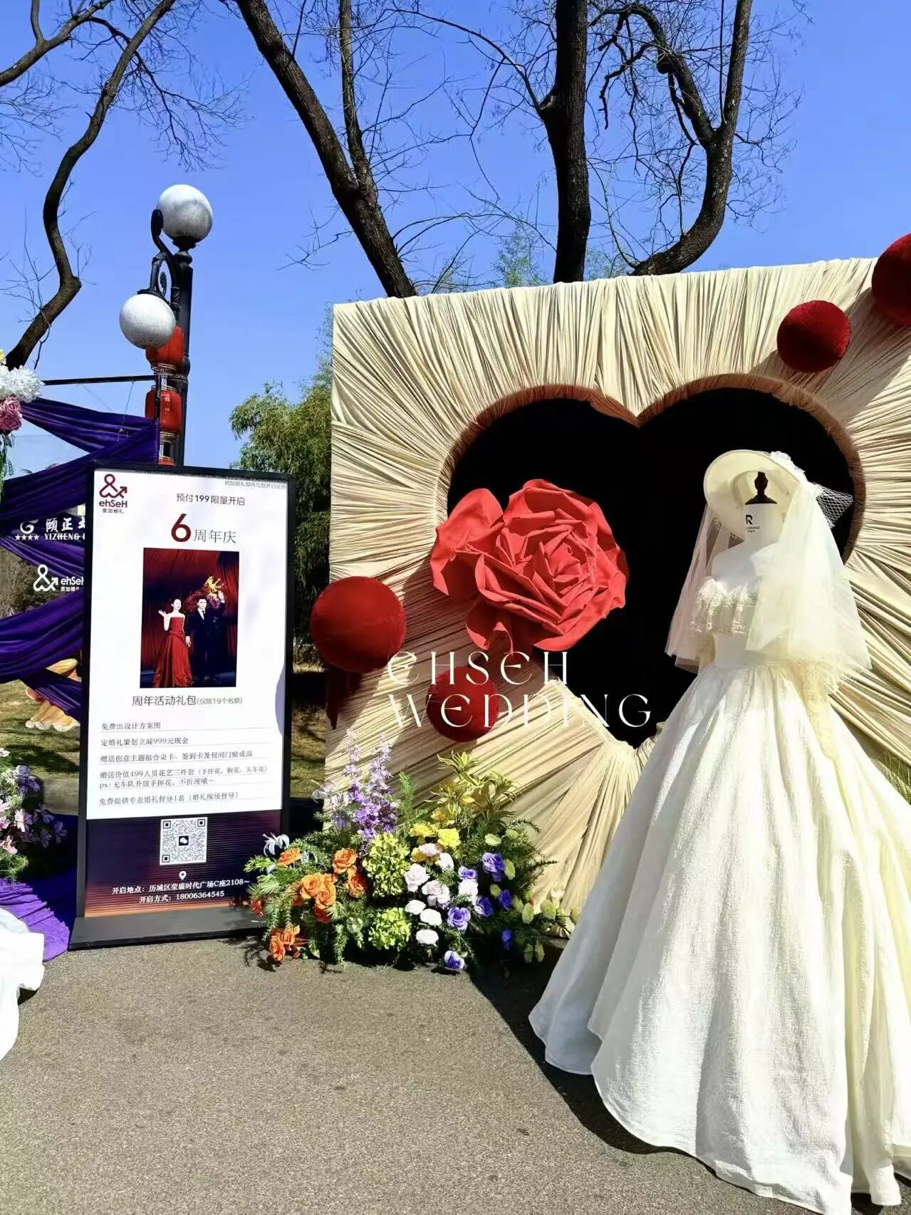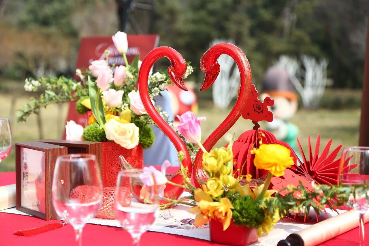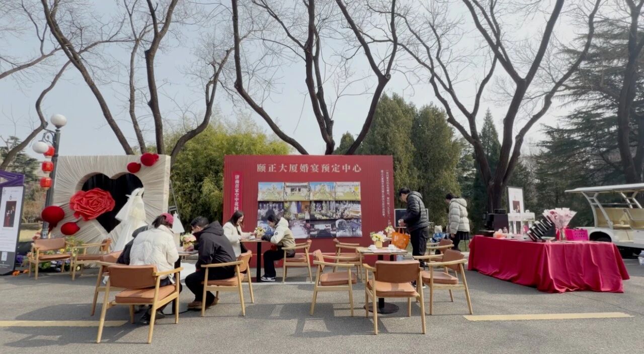 “婚庆特展区”由南郊宾馆婚礼定制中心、山东大厦婚礼会馆、颐正大厦婚宴预定中心联合打造,为准新人提供了婚礼、婚宴一站式服务咨询。多对准新人在咨询台前认真倾听婚礼管家给予的备婚指导,详细了解服务内容,并成功签约,为市集增添了浪漫气息。山东大厦的主题宴会展示也吸引了诸多关注,身着华美旗装、头戴绒花钿子的小姐姐,执团扇、展笑颜,步履轻盈穿行于市井烟火之间,以国风雅韵之姿为市集添彩,为婚宴代言。