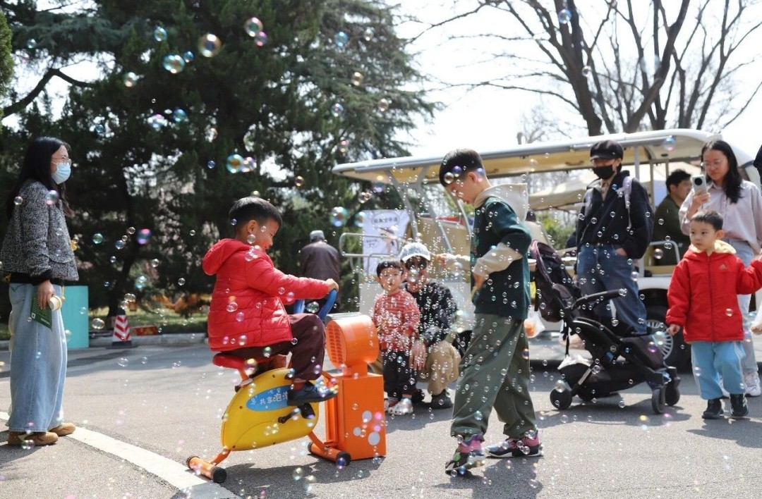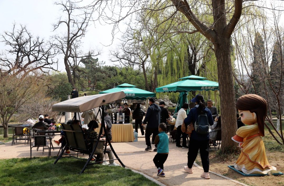南郊宾馆院内,山水舒意、宾至如归,可谓“出则繁华,入则繁花,热闹与静谧并存”。宽阔的草坪、葱郁的树木与古朴的建筑相映成趣,随手一拍便是充满氛围感的春日大片。市集巧妙融入这片环境,将得天独厚的生态资源优势转化为沉浸式的度假体验。游客漫步其间,既能感受春风拂面的惬意,又能参与丰富多彩的活动,实现了从“满目皆景”到“身心皆愉”的跨越。