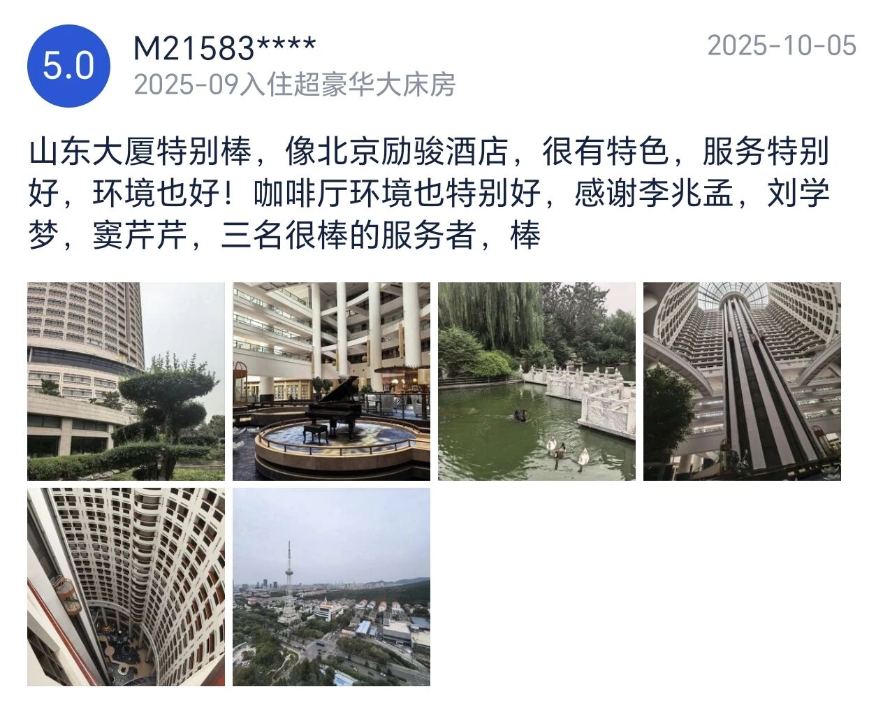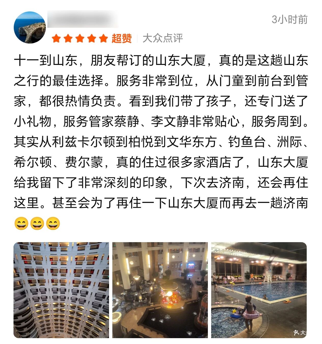 节日期间山东大厦取得了连续5天满房、5天收入超过500万、接待喜宴35场的可喜成绩。
