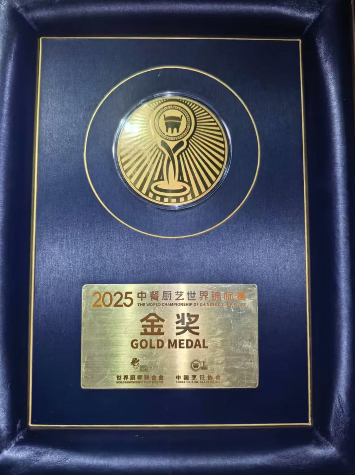 南郊宾馆选派4名业务骨干参加本次赛事,由王子峰担任领队,石怀宁、赵国利、李建担任主厨。根据大赛规则,参赛团队需在180分钟内现场完成5套位上作品,每套包含1道凉菜、1道例汤、1道肉食热菜、1道水产热菜、1道面点/甜品。宾馆参赛队伍凭借精心的设计、精湛的刀工、独特的调味和创意的摆盘,以匠心为笔、以食材为墨,呈现出一道道融合传统鲁菜与创新元素的中餐佳肴。经过激烈角逐,宾馆最终斩获最高奖项——团体金奖。此次大赛共有25家餐厅在时尚中餐赛项上荣获金奖,26家荣获银奖,21家荣获铜奖;10家团餐企业在健康团餐赛项上荣获金奖,15家荣获银奖,9家荣获铜奖。